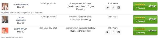 This is the paramount feature for MeetAdvisors. When entrepreneurs join the site, request advice from the approved advisors and receive it, they leave a review for the advisor. This is essential for the advisors as they are looking to build relationships. And as an entrepreneur, you can see what others have said about the effectiveness of the advisors help.