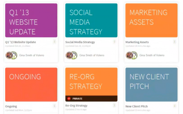 Boards, in the spirit of the Japanese Kanban (a much lauded billboard scheduling system), break projects down into stages or steps. Within each board, content can be added, ordered, shifted, and shared. Volerro likens its boards to virtual buckets that hold any type of content – PDFs, PSDs, Office docs, images, video and audio. The board method has a proven track record of boosting productivity.